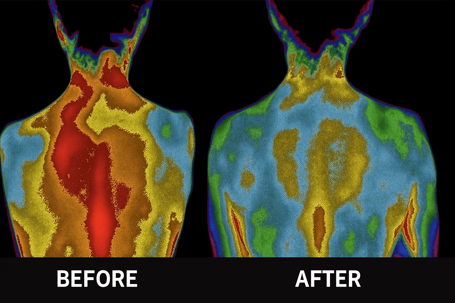 Thermische beelden laten duidelijk het verschil zien dat aarding in het lichaam maakt.