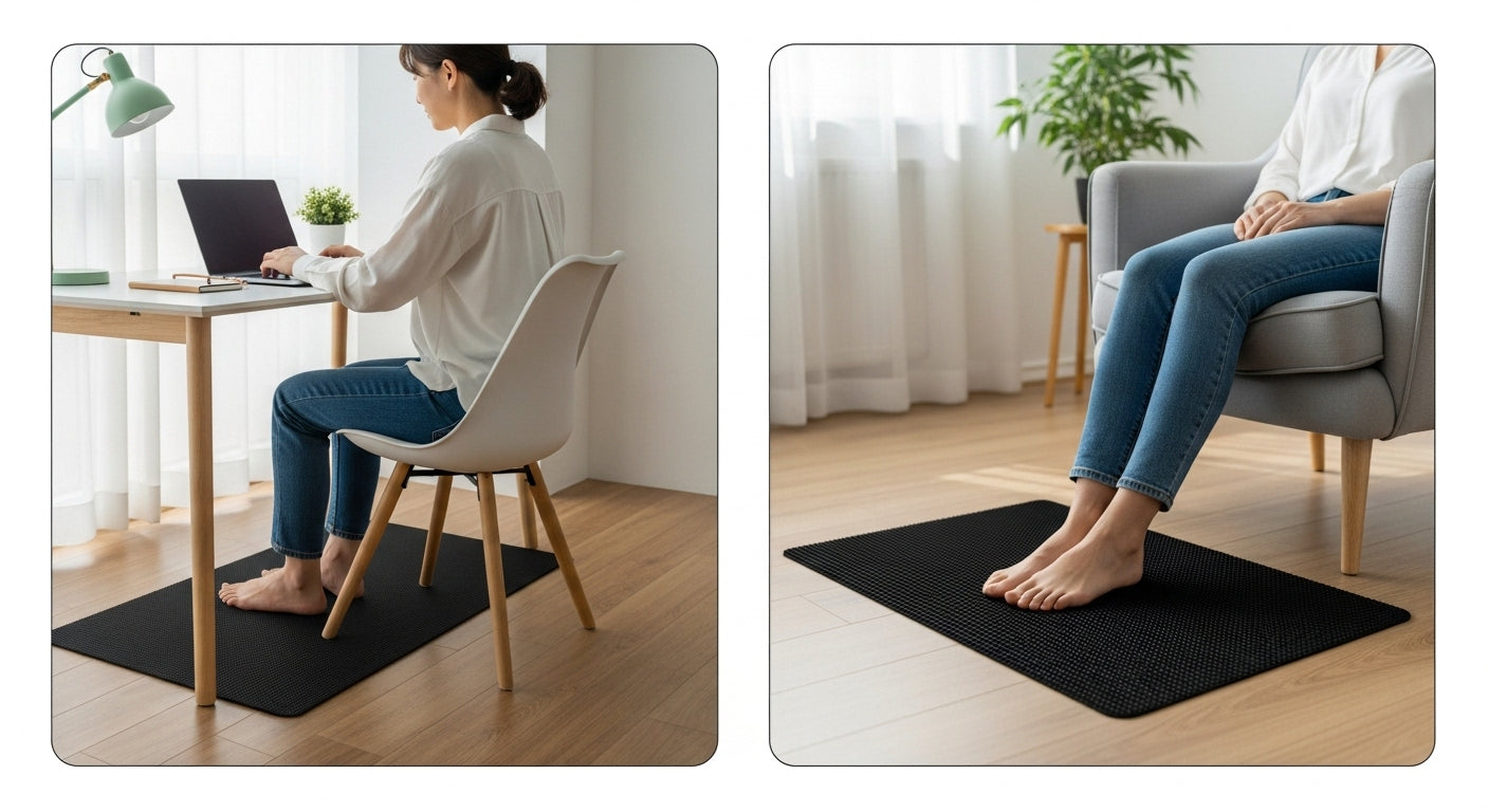 Plaats de mat: Gebruik hem onder je voeten bij het bureau, in bed of op de vloer.