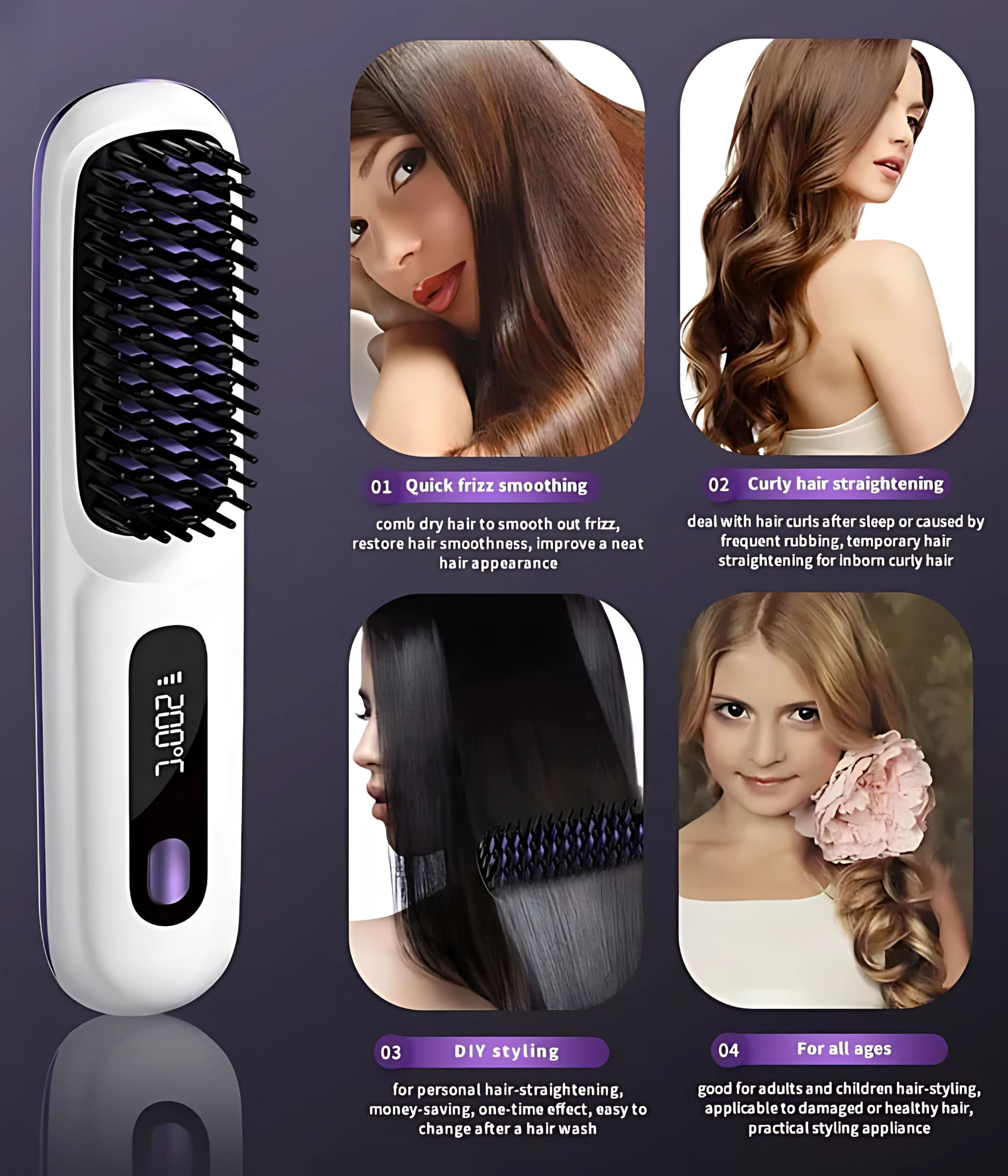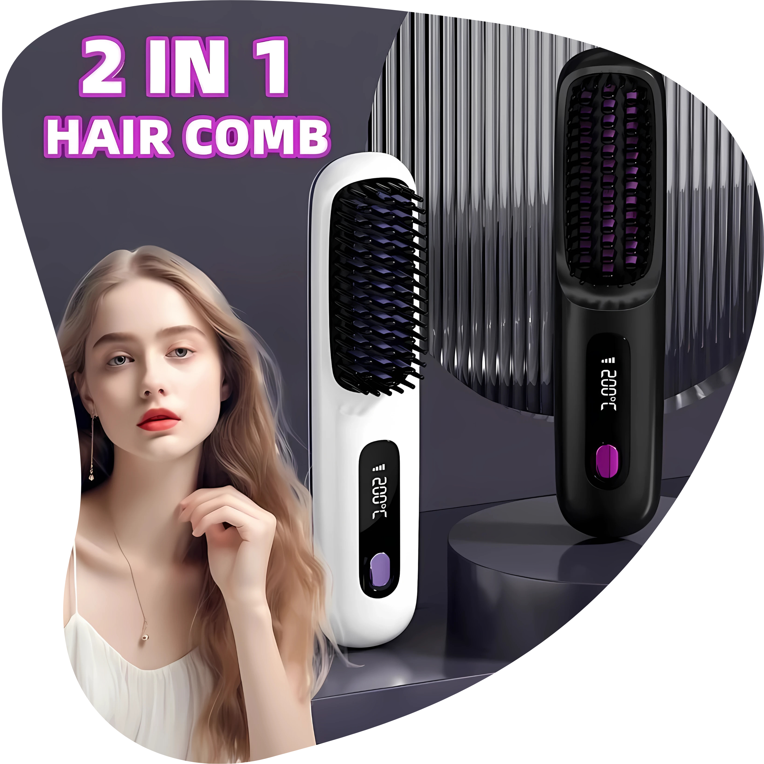 “Maak je haar glad, stijl het en laat het glanzen met onze draadloze stylingkam.”